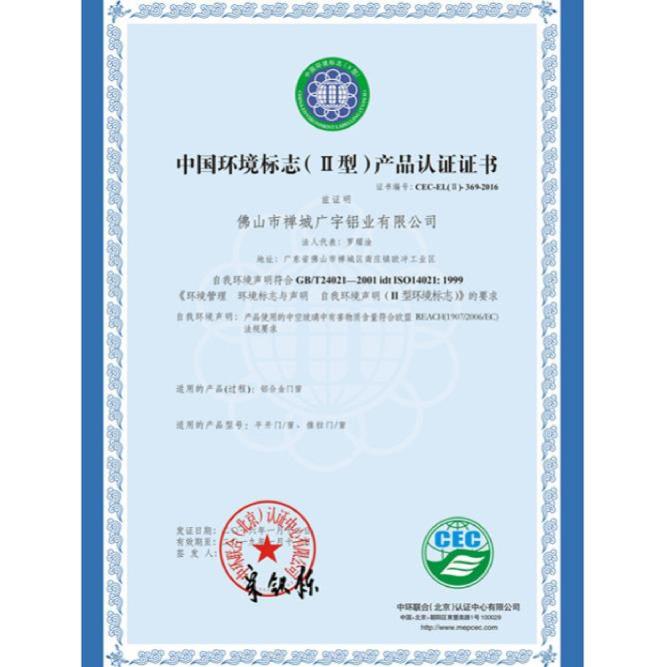 环境标志-Ⅱ型-产品认证证书