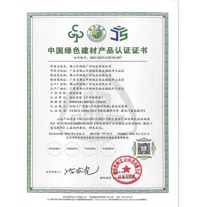 绿色检测认证证书